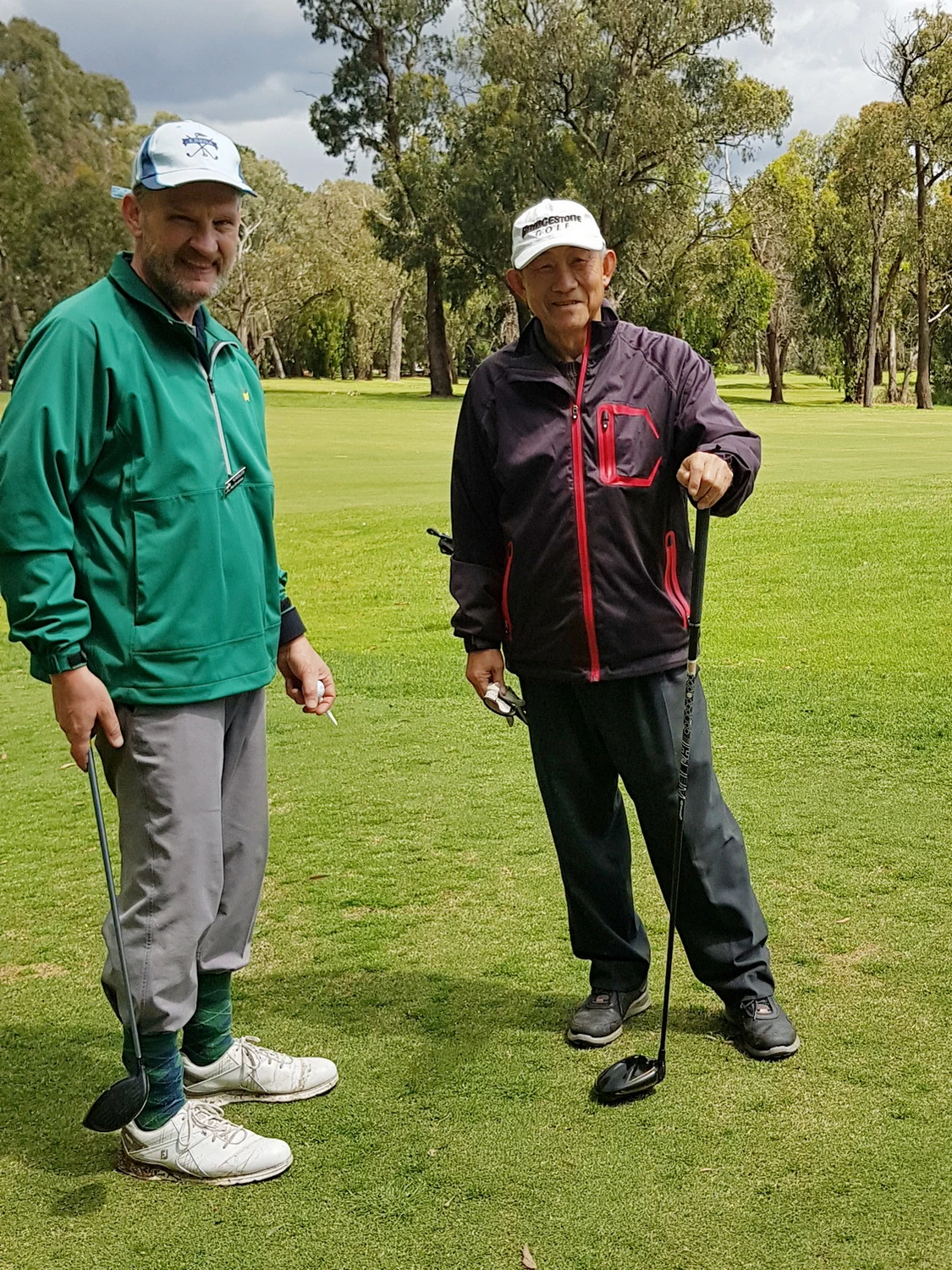 The preview of warm day, no rain was hoped for. The day started in the reverse with overcast and light mist. Well do you think the advice to use sunscreen and hats was adhered to, or was it to be spare clothing, brollies and wet weather gear. Hmm!! What a quandary. Most did start out with jackets and brollies at the ready, but quite soon various pieces of apparel were discarded or placed in golf bags. Starting with trepidation but finishing in fine weather we all had a pleasant day.