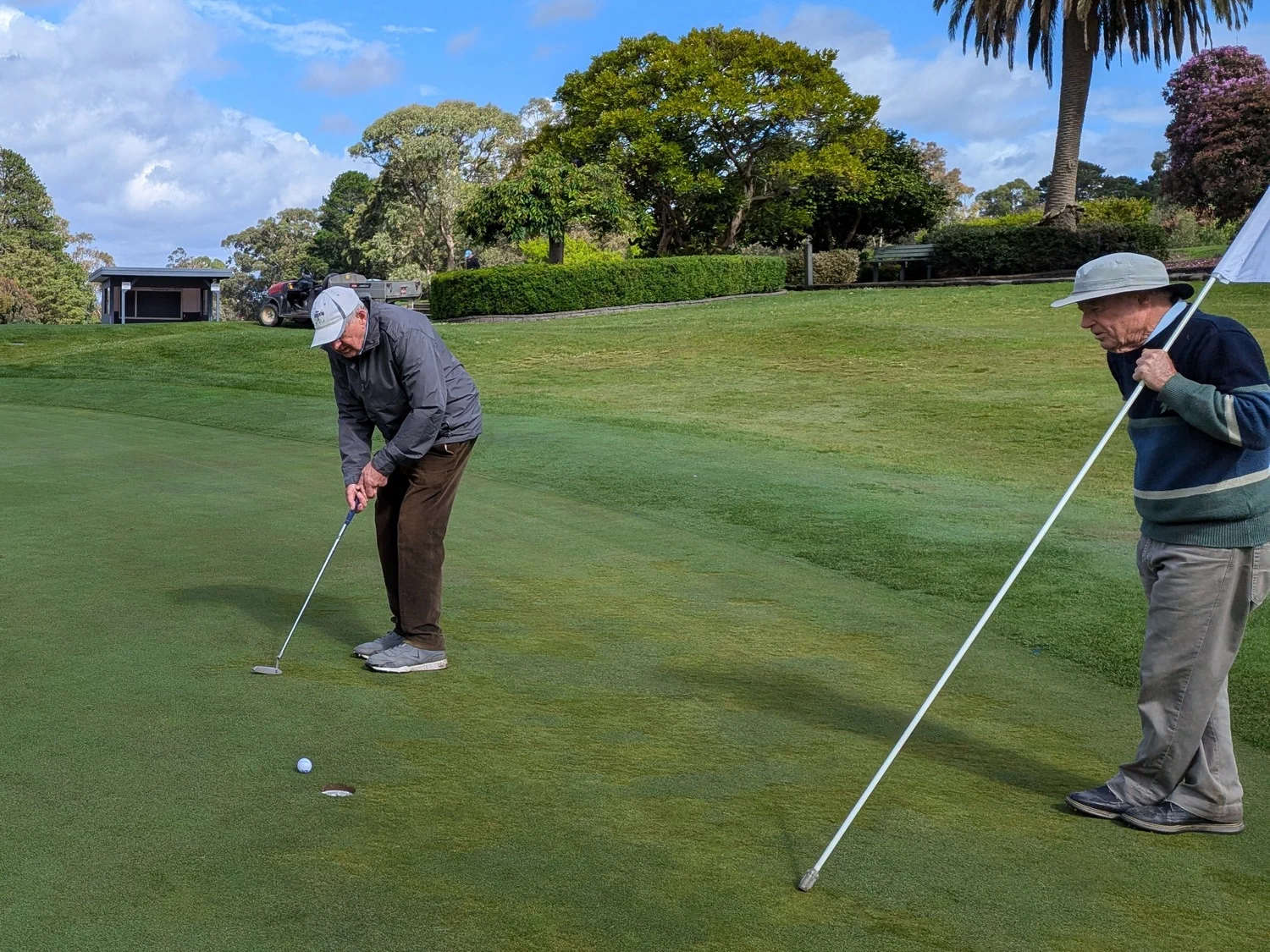 Players were welcomed by sunny skies, followed by a brief overcast period with light drizzle before returning to sunshine for the rest of the round. The course was in excellent condition, with many lush Santa Anna couch fairways (as seen in many of the photos) providing a fantastic playing surface—unless, like your secretary, you found yourself in the rough! The greens were also in superb shape, though some had tricky slopes that made reading putts a challenge.