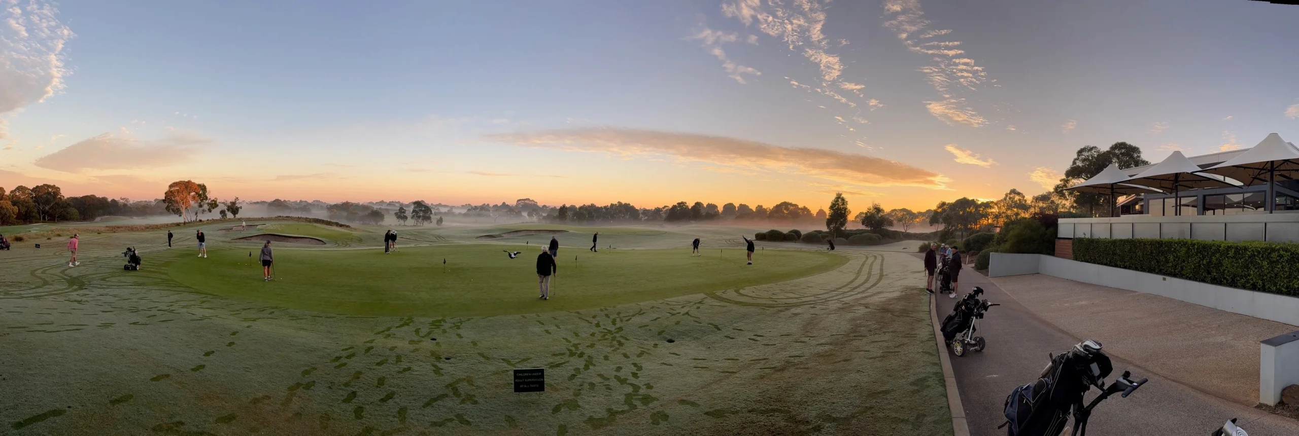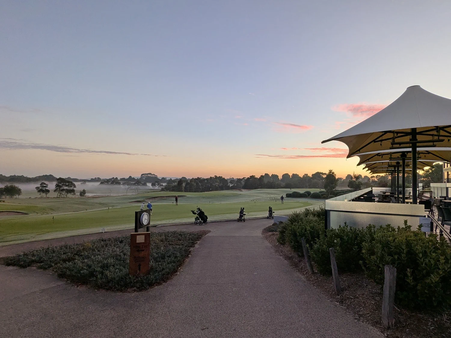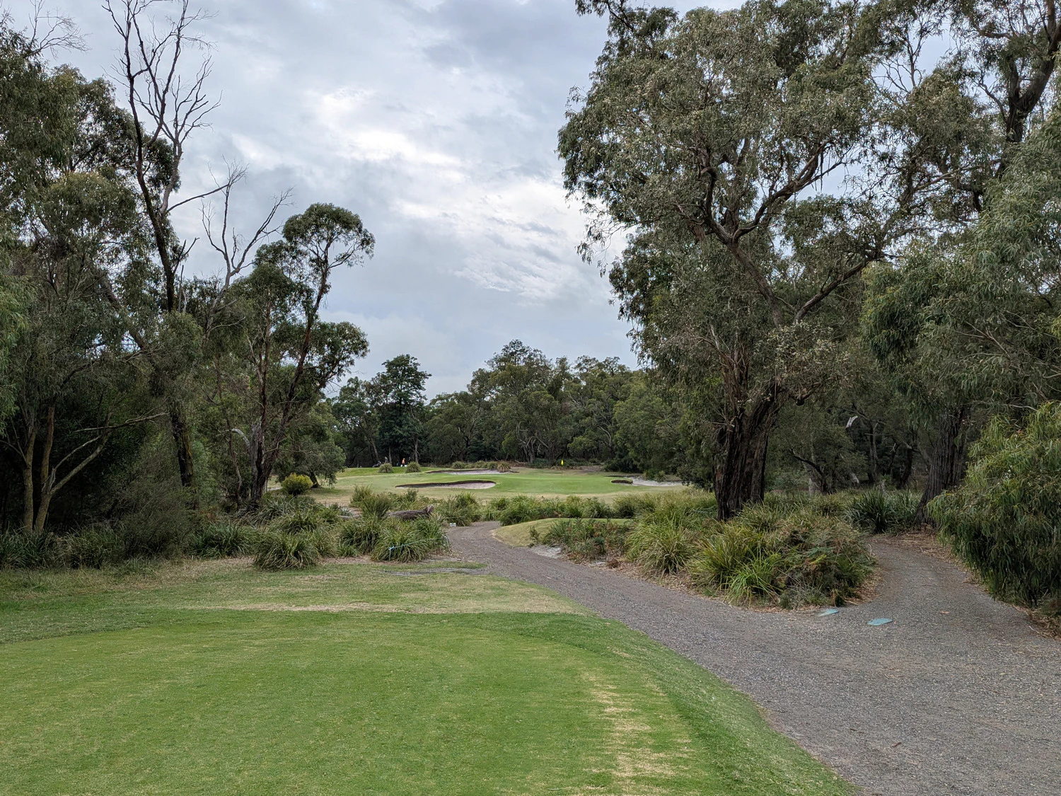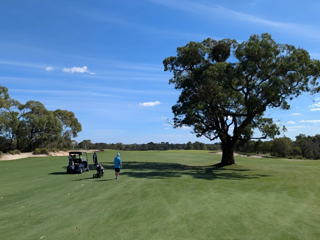 This was our second game at Glen Waverley. Last year hot and sweaty, this year overcast, slight misty drizzle, still sweaty due to the high humidity. It seems to be a good venue. Central location, well grassed and greens running true. Depending on putting styles the greens could be fast or slow. Today they were slower due to the wet days preceding. Tentative or timid putters paid with three or four putt greens.