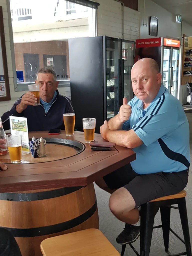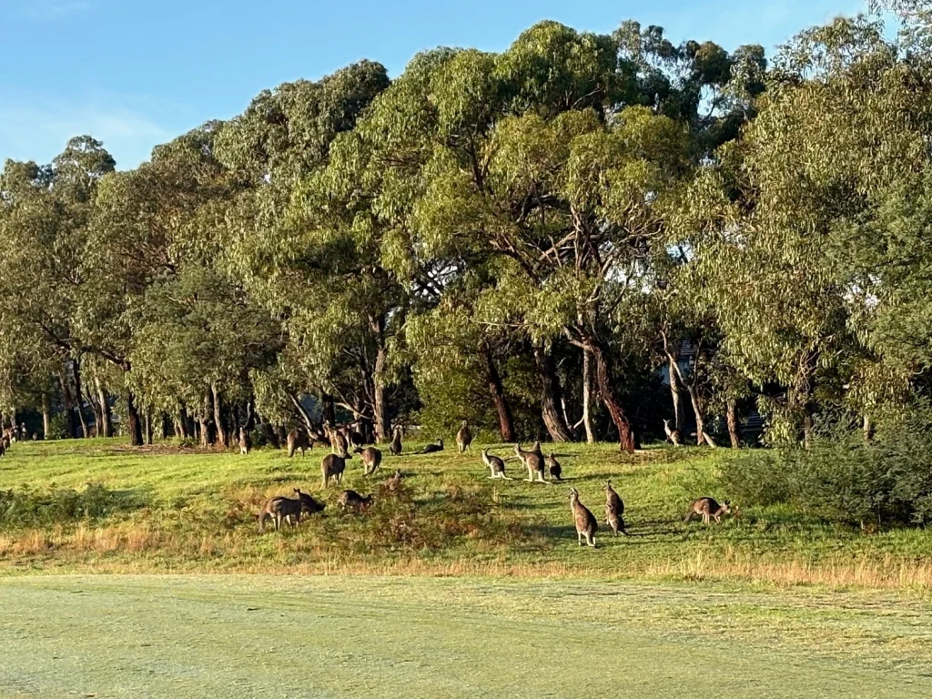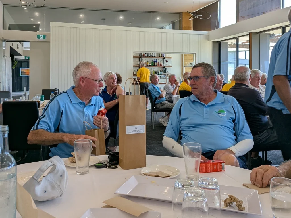 A greeting awaited on the side of the second tee and fairway. What was the greeting? A mob of about 50 or 60 kangaroos grazing and frolicking. Many of their mates, in smaller groups watched golfers throughout the morning. They disappeared into their bush retreats as the day warmed up. The early arrivals continued up to the clubhouse. Lots of muttering and concerned committee members began rearranging the day’s setup. The Golf Pro hadn’t arrived and nothing was open. Bryce the Golf Pro was under the pump. A bad start for undisclosed reasons set him back, but he recovered well. Operating on his own bringing out carts, turning on lights, opening rooms and in between making coffees. Back on track members filed in to pay. Not all cards had handicaps included and some had no holes, ratings etc. No worries, 80% of players used Mi-score.
