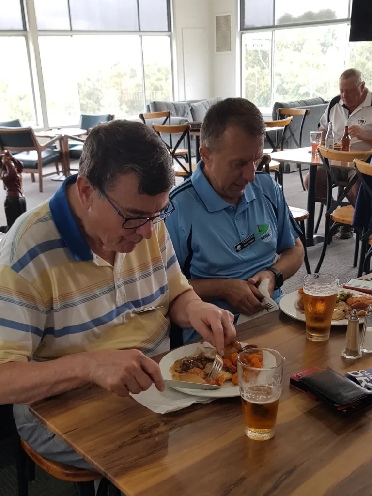 To commence the formal part of proceedings, the life members were acknowledged and the guests introduced. Ron Hottes arrived later to acclamation and recognition of his life membership to the Warburton Golf Club. Ron And Rod Coling were supplied with sandwiches, courtesy of absent players. Those present were reminded of the Lang Lang and Settlers Run inter association games and Warburton the next ESVGA game. Of course, as usual extra bookings are welcome.