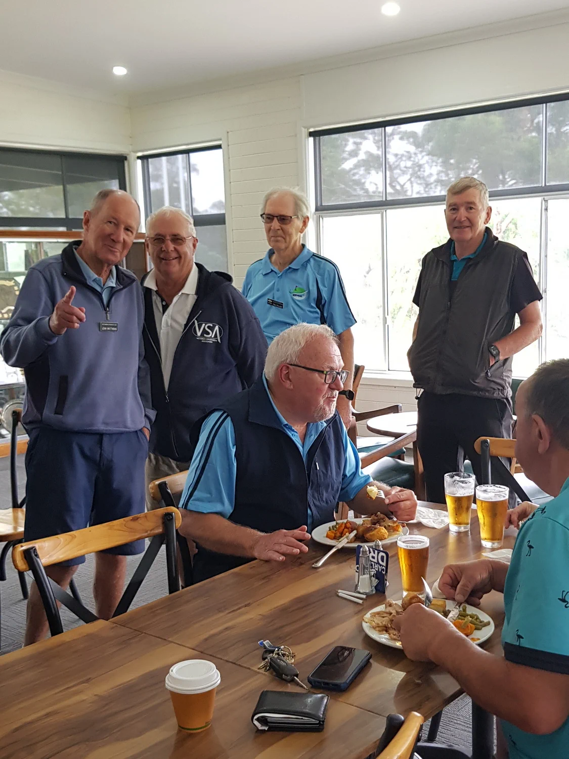 Craig Walden the CEO of the APS Benefits Group, who are ESVGA sponsors, was introduced and presented with a cap and Honorary membership. Craig spoke briefly of the services APS provides and thanked the ESVGA for the invitation to play. Two other guests, Allan Logan and Stephen Bailey were introduced. New and recently joined members were introduced and presented with their badges and caps. Terry Lobjoit, Harry Hopkins and Graham Hedrick and Tony Calder. Harry “hole in one” Hopkins was lightly roasted by his mate!!? John Matthews.