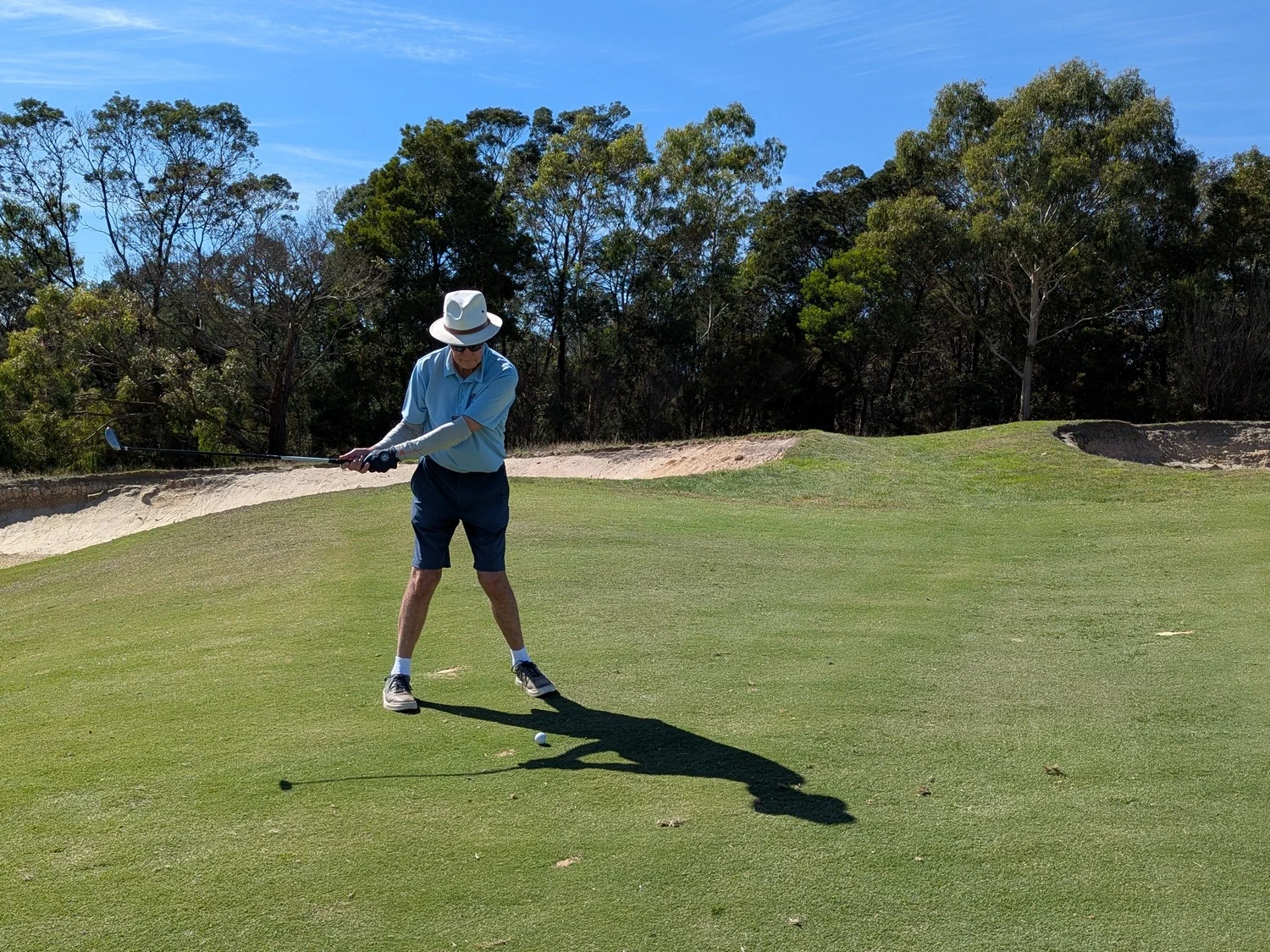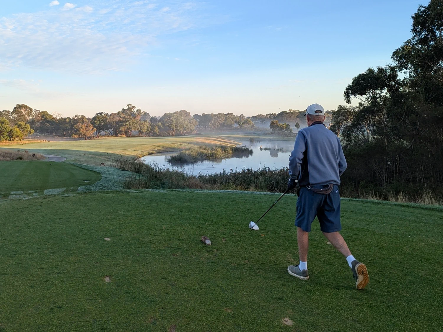 Looking at the field report sent to all members post-game, on our first hit out for the year there was an even distribution of exhilaration and dejection. The par 3, seventeenth hole had multiple attempts by each grade to get closer to the flag. That didn’t include the ones that missed completely or were just outside the best marks. The rough being cleared didn’t prevent balls being lost. A few foundlings were retrieved on Tuesday. When searching be aware of low branches and projections. Peter Christianson trying to find a ball for Neil Muller was almost concussed and knocked off his feet head butting a truncated branch.